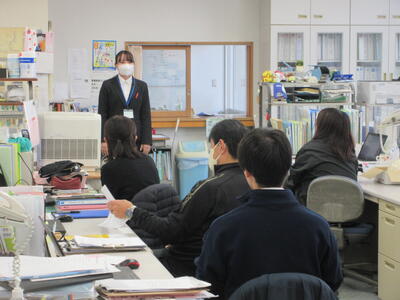 さて、今日の香取中はお客様を迎えています。初任者研修の一環で新島中から国語の先生が1日本校で授業見学したり給食を一緒にともにしたりと本校で過ごしています。