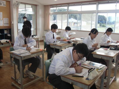 10月27日(月)みなさんお元気ですか。久しぶりの日差し。先週の冷え込みに比べて、今日はおだやかな陽気でした。さて、今日の5時間目。3年生は先週の合唱発表会・香取学習成果発表会の振り返り、2年生、1年生は定期テストに向けて学習計画を立てました。見通しをもって準備を進めていきたいです。