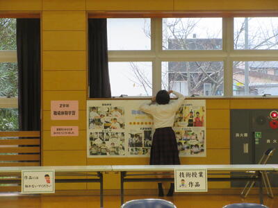 さて、今日の香取中は明日午後の合唱発表会、香取学習成果発表会に向けて、合唱練習や会場の準備。生徒たち自身でレイアウトを考えながら体育館に美術や書写作品、技術家庭科作品など掲示、展示しました。加えて今年度創部した文化部のみなさんの作品も紹介されます。また、明日の午前中は日本内外で活躍されているピアニストの松岡美絵さん、オーボエ奏者の最上峰行さんを招いて学校クラスコンサートを音楽室で行います。保護者、地域の皆様、ぜひお越しいただきご鑑賞ください。