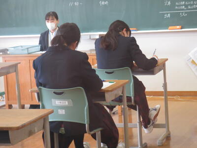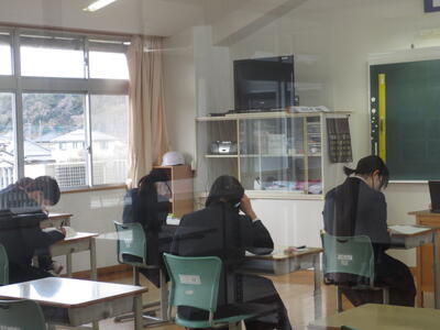 6時間目、3年生は公立高校入試に備えて面接練習や作文練習に集中。1,2年生は3年生を送る会に向けて準備を進め明日リハーサルを行う予定です。