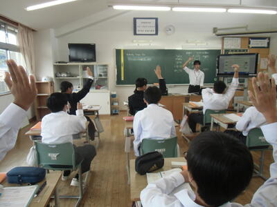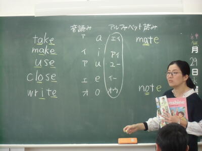 10月29日(水)みなさんお元気ですか。今日の香取中。3時間目の1年生は英語。英単語の読み方を授業の冒頭に学んでいます。英語には音読みとアルファベット読みがあること。単語の最後が「e」の時はマジック発動!例えば、takeなら、「a」の発音がアルファベット読みになる。同様に、make、use、close、writeなど、このルールを使えば初めて出てきた単語でも声に出して読めることを学びました。(一部例外はあります。例えばhave等)