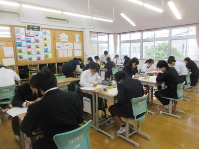10月27日(月)みなさんお元気ですか。久しぶりの日差し。先週の冷え込みに比べて、今日はおだやかな陽気でした。さて、今日の5時間目。3年生は先週の合唱発表会・香取学習成果発表会の振り返り、2年生、1年生は定期テストに向けて学習計画を立てました。見通しをもって準備を進めていきたいです。