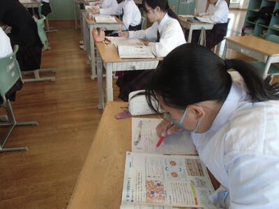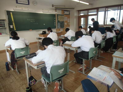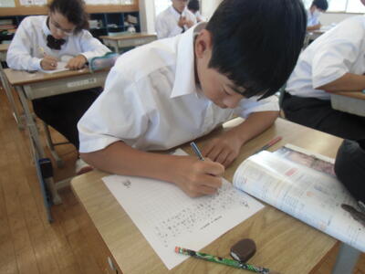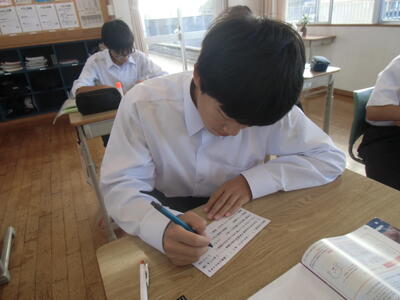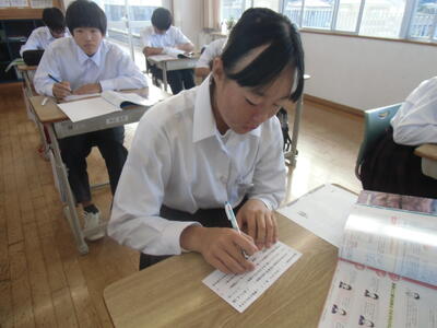 10月10日(金)気持ちの良い朝を迎えました。朝読書の時間は「かとらぼ」の日。今日は社会。1年生は歴史分野、藤原氏の摂関政治について。2年生も歴史、フランスの絶対王政と啓蒙思想について。3年生は公民分野、選挙について90秒で視写を行いました。専門用語がたくさん出てくる社会の教科書をしっかり理解できるようにしていきたいです。