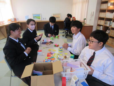 さて、今日の香取中。3年生は定期テスト初日。英語、数学、国語にチャレンジ。明日は理科、社会。お昼休みの図書室1階は、たくさんの1年生が集まり、牛乳パックアートにチャレンジしたり、囲碁盤で五目並べ。オリジナリティあふれる作品が仕上がってきています。完成品は1,2年生昇降口の階段手すりなどに飾る予定です。ちょっと殺風景だった空間に明るさが増すと思います。
