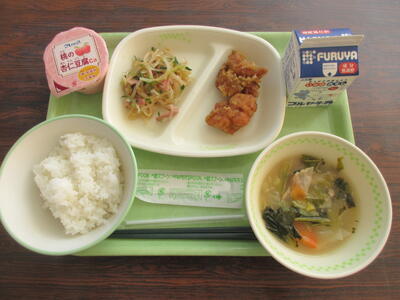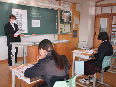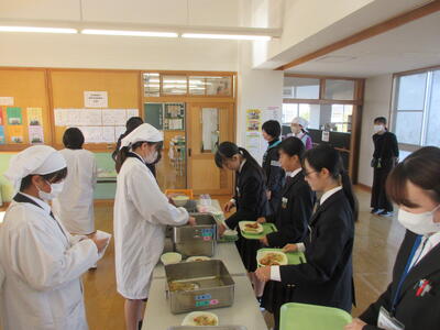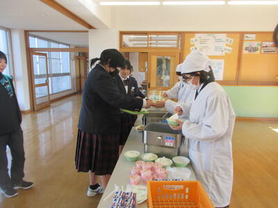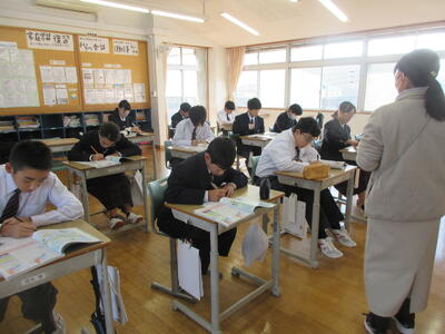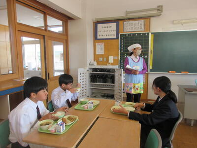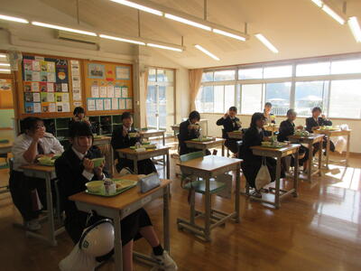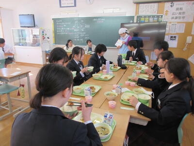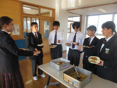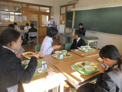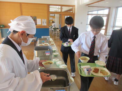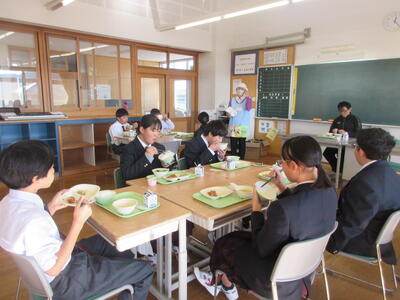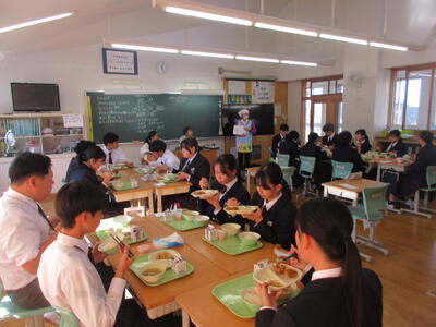 今日は月曜日程で授業は5時間まで。給食は地産地消献立「千葉を味わおう」第2弾。メニューは香取のマッシュルーム入りグラタンに千葉ポトフ、根菜のラタトゥイユ、米粉パンに牛乳。マッシュルームは香取市が誇る生産量日本一の食材。千葉ポトフは千葉県産食材の旨味を引き出し身体の中から温めてくれるスープ。このレシピは香取中の香取学習2で2年前の食と健康コースの生徒が開発したもの。また、かぶやかぼちゃ、れんこんが入った根菜のラタトゥイユは食感も楽しめました。今日もおいしくいただきました! そして2年生では教育実習が2週目に入っています。帰りの会では2年生にお話しをする実習生。実習も折り返しを迎えます。ぜひすてきな実習を本校で終えられたらと願っています。
