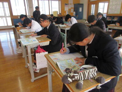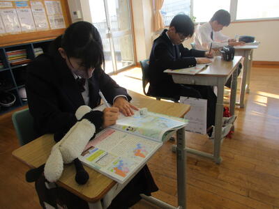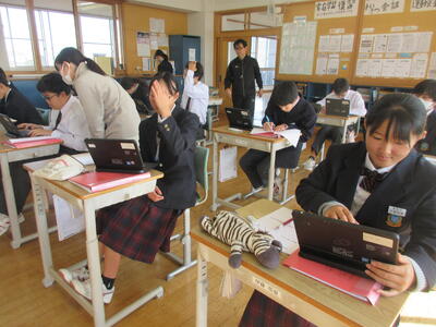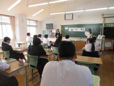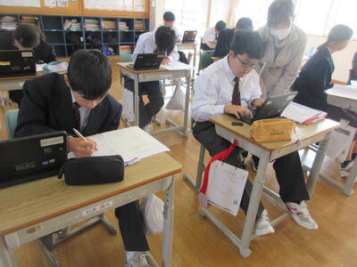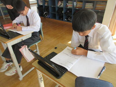 1時間目の3年生は学級レク。新しい仲間とスポーツをとおして親睦を深めました。5時間目の1年生は社会地理分野。ヨーロッパの農作物等について理解を深めました。2年生は英語。昨日スリランカから転校してきた3年生に日本についての紹介をタブレットを使ってプレゼンできるように準備しました。6時間目の3年生は英語。スリランカから転校してきた友達に自己紹介から始まりこれまで学んだ表現を使って英語でのコミュニケーションを楽しみました。