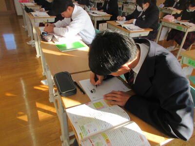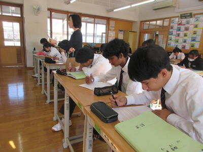 さて、今日の朝の時間は香中EIKEN。自分が選んだ級で受験しました。1級は3年終了程度の重要連語。2級は形容詞の比較級・最上級、3級は基本動詞。80点以上が合格ライン。1週間の練習の成果を試しました。