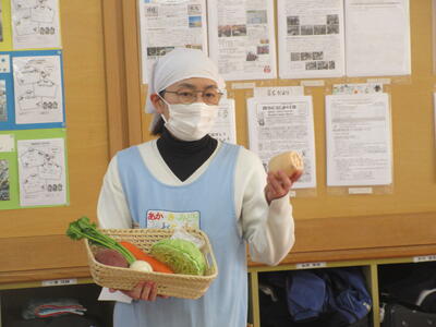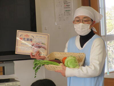 1月30日(金)本日の給食は香取地区の給食センターの栄養教諭の先生方が香取市、神崎町、多古町、東庄町の地場産物を取り入れた「香取郡市統一献立」の日。香取市と言えば有名なさつまいもをはじめ、今回は瑞穂地区で栽培されている今人気の「れんこん」、そして甘さが際立つキャベツ、そしてきゅうりなど、香取市産の食材がたくさん使われているメニューです。また、今年もブライトピック様より寄附されたブランド豚「志澤豚 米仕上げ」のロース肉を使ったメニューも入っています。給食の時間に各学年を栄養教諭の先生がまわり説明をしていただきました、みんなで感謝しておいしくいただきました。ありがとうございました。