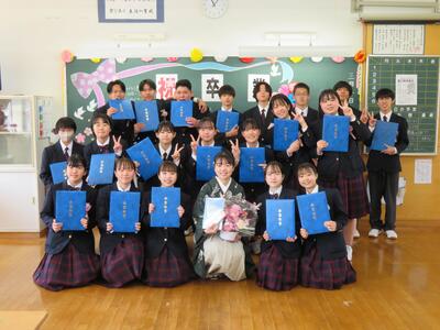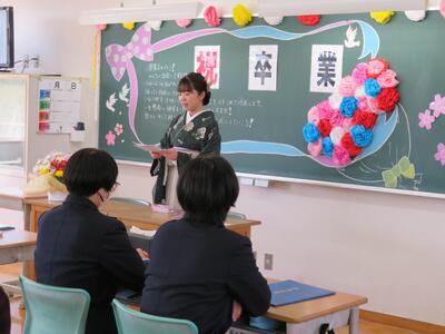 午後からは1,2年生で卒業式の会場準備。手際よく準備が進められ、早く分担が終わった生徒の皆さんは「何か他に仕事ありませんか?」と積極的に明日の会場づくりに関わってくれました。あっという間に準備が明日に向けて準備万端です!最後に1,2年が集まって「気合い」ならぬ『気愛』を入れて明日に備えました。