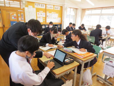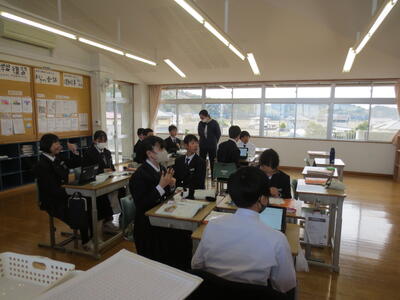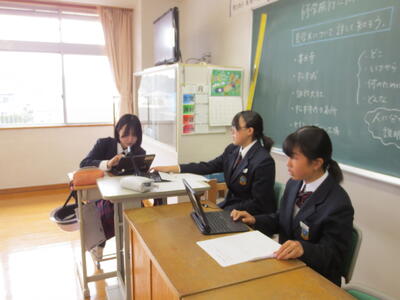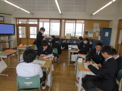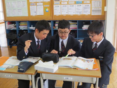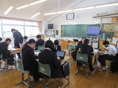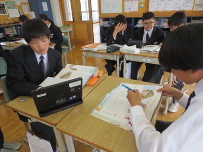 3月17日(火)みなさんお元気ですか。3時間目の1年生は英語。教科書最後の単元、さとうわきこ作ばばばあちゃんシリーズ「そりあそび」英語版を読んでいます。クラスをグループに分け、タブレットや英語辞書を利用しながら物語読み込んでいきところです。一方、2年生は修学旅行に向けて事前学習がすでにスタートしています。信州長野方面を訪れる新3年生。今日は見学先についてタブレットを利用しながら調べています。実のある学習になるようサポートして参ります。
