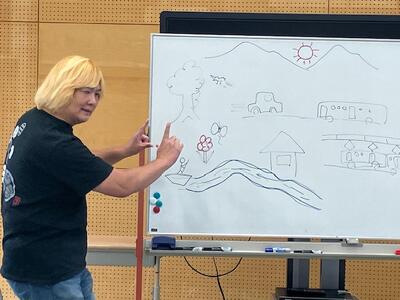 10月7日(火)放課後、文化部では手話教室を開催。新たに香取市から手話の講師の先生もいらっしゃり、絵に描かれたモノを手話でどう表現するのか一緒に学びました。舟、川、木、花、蝶々、山、太陽、家、車、バス、電車などとても表情豊かに手で表現。ことばが見える、見えることば。手話の奥深さを感じた時間でした。