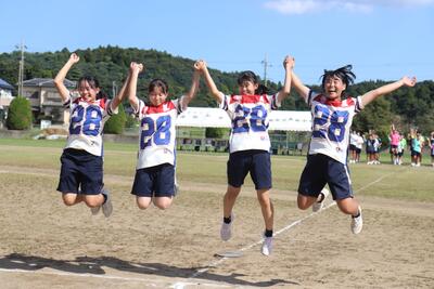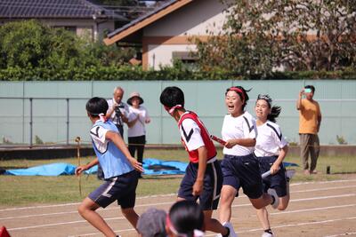 10月2日に行われた体育祭の模様を昨日に引き続きご紹介します。今回は学年種目と保護者・地域の方参加型の種目「みんなで玉入り」を紹介します。