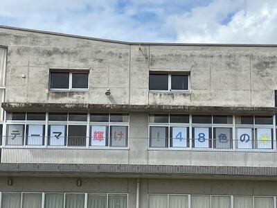 今年も9月になっても酷暑が続いてきましたが、「暑さ寒さも彼岸まで」と昔から言われています。秋のお彼岸を迎えた土曜日あたりから最高気温も30度を届かなくなってきました。本校では今年度から体育祭練習の段階から暑さが和らぐお彼岸に入ってから練習を開始することとしました。そしてその開始日が今日、22日。各学年や全体練習が始まりました。日頃の学びの成果を実感できる機会の一つとしても体育祭があります。10月1日当日に向けて怪我無く練習が進められたらと思っています。今年度もグラウンドから見える位置に体育祭スローガンが掲げられました。『輝け!48色の光』一人一人の輝きが楽しみです!