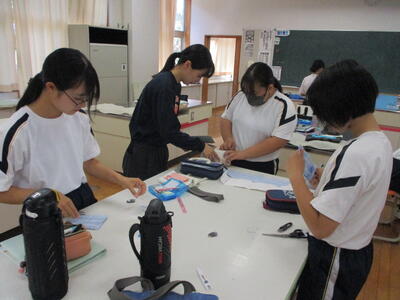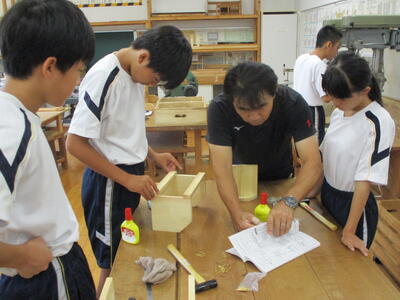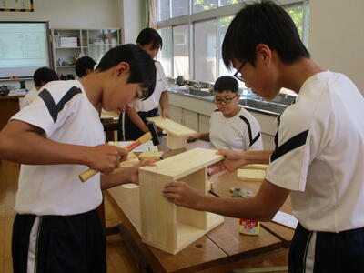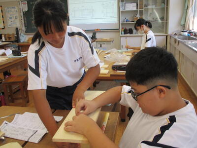 9月24日(水)みなさんお元気ですか。朝の時間は体育祭に向けて応援練習が始まりました。紅白ごとに場所を変えて練習に励んでいます。授業では1年生が技術でブックシェルフを製作中。2年生はティッシュ入れをつくっています。