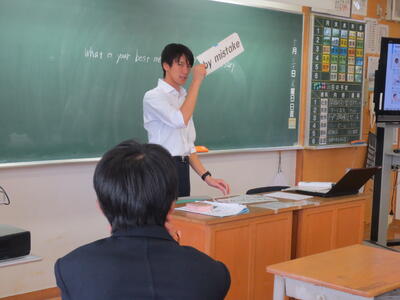 一方で、2年生はその英語。授業冒頭はペアでのQ&A.今回のトピックは、「What is your best memory in 20th anniversary?」でした。返ってきた答えの多くが、「It is the chorus contest. 」How was it?の返しに、I enjoyed it.や I did my best. などがありました。その後、本文の単語練習などを進めました。