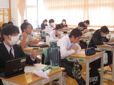 身近なものがどんなものに生まれ変わったり、使いつながれたりしているでしょう。本校では多くの生徒が制服や体操服などをリユースしていますね。また、生徒からは「循環型社会と持続可能型社会は違うのだろうか?」といった問いがつぶやかれ、そのことについて考える場面もありました。みなさんの意見はどうですか?