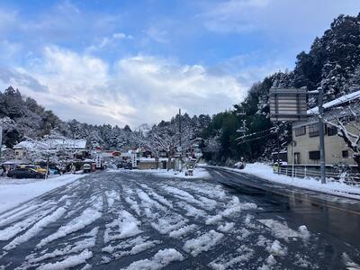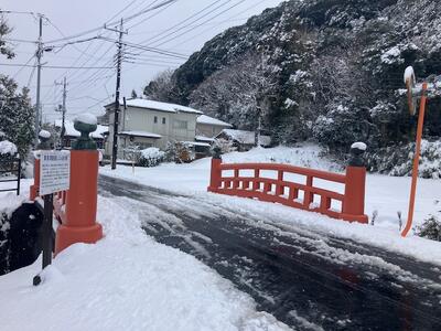 以下の画像はお昼時点での校庭と学区周辺(車を止めて安全を確認した上で撮影)国道356号線沿線や津宮河岸、神道山、香取神宮の様子です。雪がやんでとけだしても凍結して早朝や日陰の場所は転倒しやすいので十分気を付けるようにしてください。