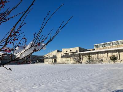 2月9日(月)みなさんお元気ですか。本日2/9は積雪のため安全を最優先に休校といたしました。晴天の中、グラウンドの雪が日差しを反射して校舎が鮮やかに輝いて見えます。