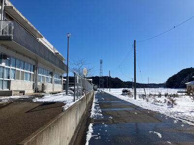 以下の画像はお昼時点での校庭と学区周辺(車を止めて安全を確認した上で撮影)国道356号線沿線や津宮河岸、神道山、香取神宮の様子です。雪がやんでとけだしても凍結して早朝や日陰の場所は転倒しやすいので十分気を付けるようにしてください。
