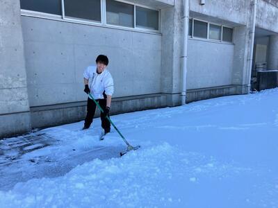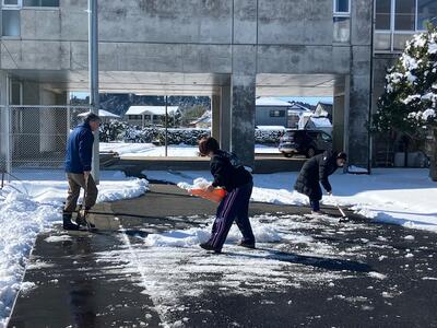さて、安全第一に出勤できる職員で校舎・校庭の安全確認を行い、登下校時の通路や体育館側手前駐車場の一部を雪かきをしました。明日の登下校の際、残雪で足もとが悪くなっています。転倒などしてけがをしないよう十分気をつけるようにしてください。また、高い樹木や建物から雪が落ちてくる場合もありますので安全確認をしながら通行をお願いします。