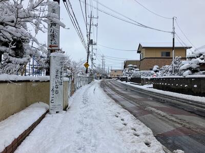 さて、学区を巡回しましたところ、かなりの積雪です。正面玄関前で約12cmほどの積雪を午後1時時点で観測しています。生徒のみなさんの自宅周辺は大丈夫でしょうか。自宅の雪かき雪遊び等でけがをしたりしないようにしてください。公立高校入試を控えている3年生のみなさん、そして、3年生を送る会に向けて頑張っている1,2年生のみなさん、健康が第一です。不要な外出は控え、体調管理をしっかりして明日は自宅での学びに励みましょう。