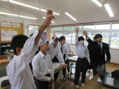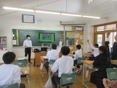 いろいろな考えが出て生徒みなさんからは「へー」「なるほど」など反応はさまざま。参加した生徒の皆さんの笑顔が素敵な昼休みの図書室1階でした。