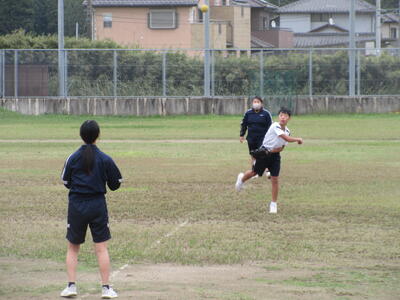 4時間目のグランドは1,2年生の合同体育。今日はソフトボール。体育の先生方以外にも多くの先生も加わっていました。生徒4人か5人に対して先生が1人いる割合。香取中ならではの授業。秋の風吹く中、ソフトボールで身体があたたまりました。