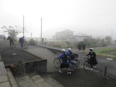 11月26日(水)みなさんお元気ですか。今朝の香取中は霧の中。校舎の東南方面が里山がひろがるため、昨夜との寒暖の差で霧が発生したようです。霧のため朝日が届かず、外気温は3度か4度ほど。寒さの厳しい朝を迎えました。日中はおだやかな天気。