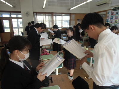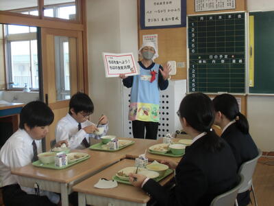 5時間目、1年生は国語。竹取物語について今なお読み継がれる理由を考えました。2年生は道徳。お互いに学び合う姿勢について考えました。3年生は保健体育。環境問題についてグループごとにプレゼンを行い、私たちにできることは何かを考えました。なでしこ学級では「カレーパーティーをひらこう」を学習課題にカレー作りの材料を考え買い物に向けての準備をしました。
