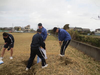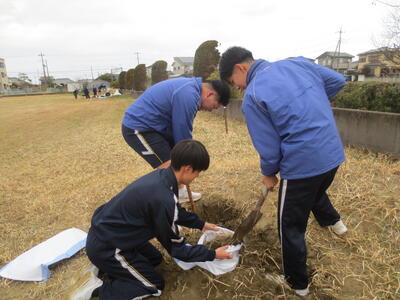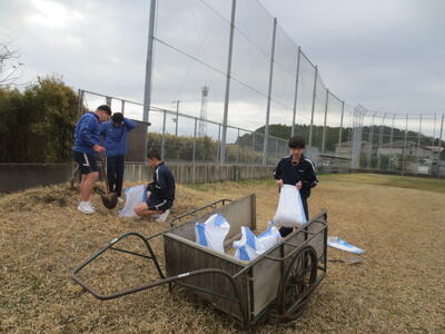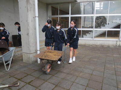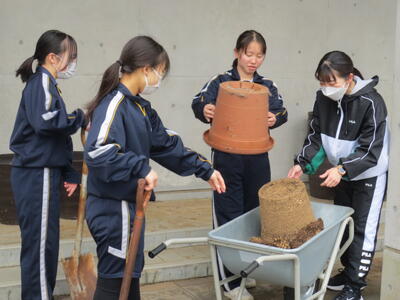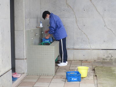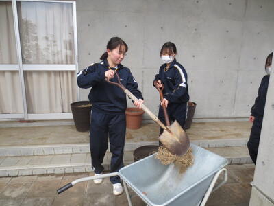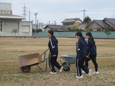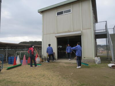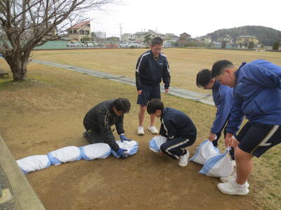 3月2日(月)みなさんお元気ですか。3月に入りました。3年生のみなさんはいよいよ最終週。そんな卒業を間近にした3年生のみなさんが校庭や校舎の環境美化活動を行ってくれました。3年学習室前のベランダの掃除や校庭の段差部分を土のうを作って補強したり、植物の鉢をきれいにしたり、体育倉庫内の整理整頓など大活躍。大変きれいになりました。ありがとうございました! 4時間目は全校式歌練習。音楽の先生の指導の下、体育館で練習を行いました。在校生は男子の人数が少ないですが、合唱として男声パートをしっかり響かせていました。そして5時間目、3年生は明日が千葉県公立高校入学者選抜の入学候補者が発表される日。その事前指導を行いました。良い結果を祈るばかりです。