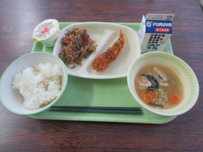 今日の午前中、1,2年生の音楽は合同。明日の3年生を送る会や卒業式に向けて歌の練習を行いました。給食はアジフライにかき玉汁、肉野菜炒めにごはん、牛乳。デザートはわらび餅。給食にわらび餅は初登場でしょうか。おいしくいただきました。午後、3年生は奉仕作業。3年生の教室がある2階部分をすべてワックスがけ。協力してきれにしてくれました。画像は片付けの様子しか撮れていませんことお許しください。1,2年生は3年生を送る会のリハーサルを行いました。練習シーンは当日のネタバレになりますので画像でご紹介できませんことご了承ください。