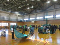 11月29日(土)午後1時30分から3時30分まで体育館を会場に明日行われる津宮地区防災訓練の準備を行いました。本校防災倉庫、水の郷小防災倉庫から、備蓄品等を運び出したり、室内テントや簡易ベッドなどの設置方法を練習したりしました。明日の津宮地区防災訓練本番に向けて準備万端です。