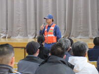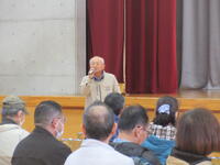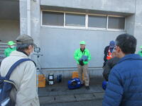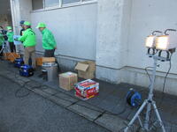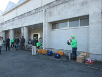 9時から開会式が行われ、本日の流れの説明のあと、自治会が「向こう三軒両隣」の精神で隣近所の方と声を掛け合っての避難誘導などを行っている事例をお聞きし、災害時の避難について理解を深めました。その後、防災テントや救急時の簡易ベッドや簡易トイレを組み立てたりして、住民自身で自助、共助できる体制を実地練習をしながらつかんでいきました。体育館外では発動機を使ってのライトの点灯や炊き出し釜の紹介もありました。消防団による水の郷小プールから給水タンクへの防災用の水のくみ上げ、被災時のトイレの水の排水などを実際に行ってみました。