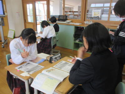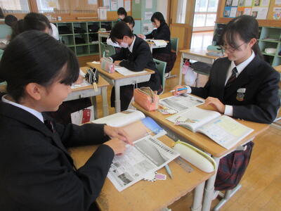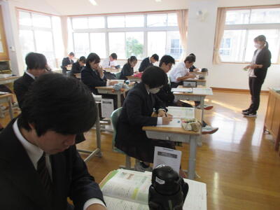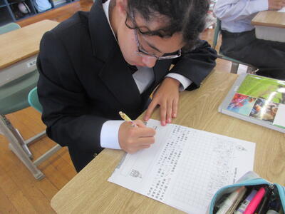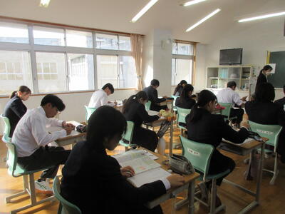 放課後、3年生は補習、今日は英語。長文問題の攻略方法をみんなで考えました。担当の先生からは、全文を読まなくても、段落毎の冒頭1文だけでもおおまかな内容がつかめること、注釈に載っている単語が文章全体を考える大きなヒントになること、そして一文一文には必ず主語と動詞があること。動詞をつかめばその前後を読みながら意味がわかることなど、たくさんの攻略法を教えてもらいました。まずはちょっとずつ読む機会を作って、英文に慣れていくことが大切です。自分の好きな分野や推しのことなどを英語で読んだり発信できたら、今より自分の世界が広がるかもしれませんね。