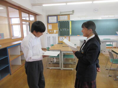 10月28日(火)香取市役所議場で「中学生議会」が開催され、本校から3年生2名が参加。市議会が行われる議場で実際に一般質問を行ったり、会議録署名を行ったりしました。本校からは「閉校した学校の利活用について」質問を行い、副市長、財政課長が答弁。もう1名の質問「下水道管の老朽化について」は市長と下水道課長が答弁をされました。社会科公民分野で学んでいることがそのまま実生活につながる内容。主権者教育の一環として、よりよい生活が実現できるよう、自分たちは何ができるか考える機会となりました。本機会をいただきました香取市役所様、香取市教育委員会さまに感謝申し上げます。