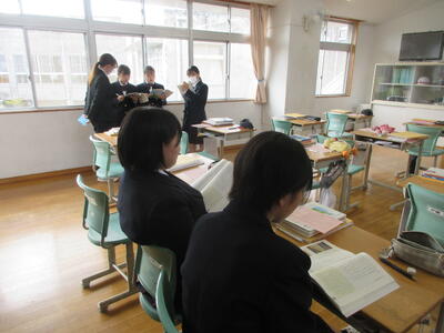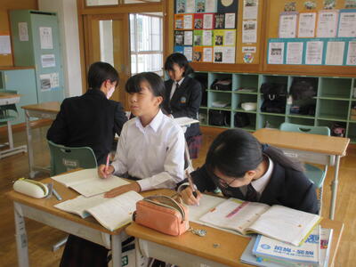 10月27日(月)みなさんお元気ですか。久しぶりの日差し。先週の冷え込みに比べて、今日はおだやかな陽気でした。さて、今日の5時間目。3年生は先週の合唱発表会・香取学習成果発表会の振り返り、2年生、1年生は定期テストに向けて学習計画を立てました。見通しをもって準備を進めていきたいです。