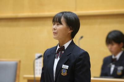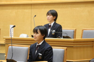 10月28日(火)香取市役所議場で「中学生議会」が開催され、本校から3年生2名が参加。市議会が行われる議場で実際に一般質問を行ったり、会議録署名を行ったりしました。本校からは「閉校した学校の利活用について」質問を行い、副市長、財政課長が答弁。もう1名の質問「下水道管の老朽化について」は市長と下水道課長が答弁をされました。社会科公民分野で学んでいることがそのまま実生活につながる内容。主権者教育の一環として、よりよい生活が実現できるよう、自分たちは何ができるか考える機会となりました。本機会をいただきました香取市役所様、香取市教育委員会さまに感謝申し上げます。