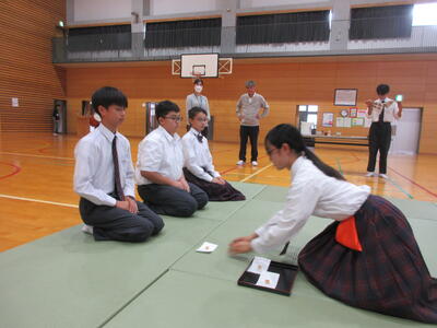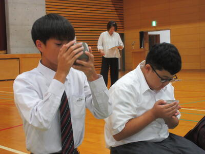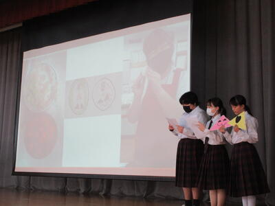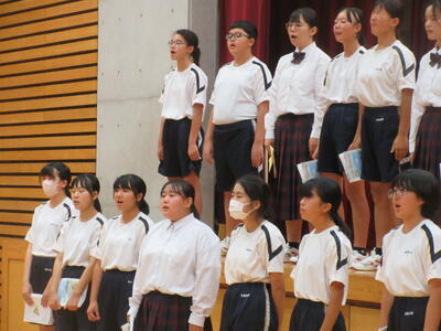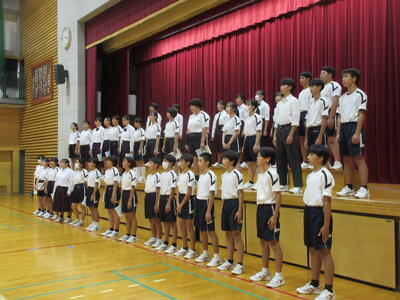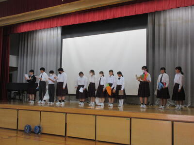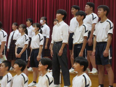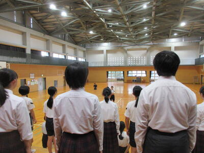 そして、2時間目は全校集会及び前期終業式。9月から10月にかけての生徒の活躍を大会、コンクール等の報告で披露。終業式では各学年から代表者が、前期を振り返り発表がありました。その内容をキーワードにすれば、挑戦、継続、あきらめない に表せると思います。明日から3連休。10月14日の後期始業式で新たなスタートをきりましょう。