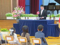 初めに各学年の代表者に修了証書が渡されました。どの児童も立派な態度で証書を受け取ることができました。続いて、児童代表(5年生)から今年度の振り返りと、次年度の目標について発表がありました。具体的な手立てについても考えられた、全校のお手本となる発表でした。