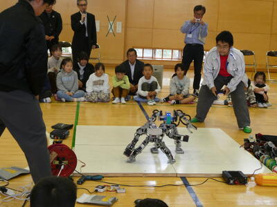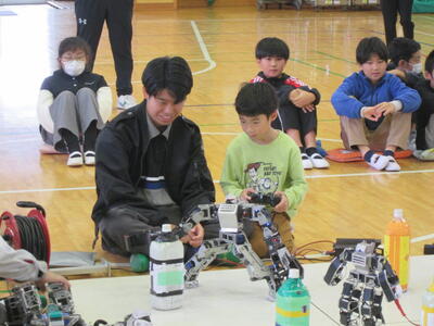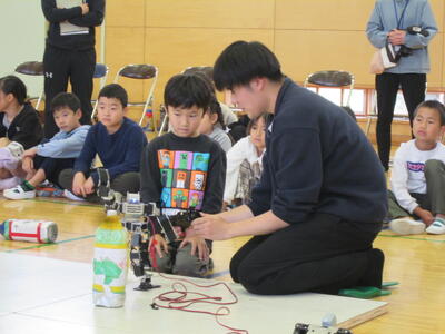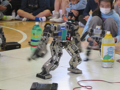 学生さんが持ってきたロボットを各学年の代表の児童が操作して動かしました。コント