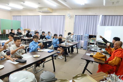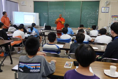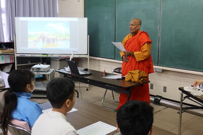 僧侶であるパンニャラーマさんを講師に招き、スリランカ文化について学習しました。