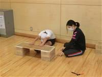 写真①②【5・6年体育】上体起こし・長座体前屈を実施しました。去年よりレベルアップできたかな?