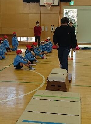 器械運動スペシャルレッスンの第3弾、とび箱教室の第1回目が行われました。学年に応じて、とび箱遊びや開脚跳び、かかえこみ跳び、台上前転などの練習をしました。