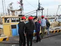 まず最初に銚子漁港に行き、漁船の様子を見ました。漁船の方に何が採れるんですかと尋ねると、「タイやヒラメだよ」と教えてくださいました。
