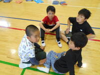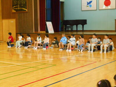 その後、3つのレク(猛獣狩り、ジャンケンピラミッド、〇×クイズ)を行い、1年生と上級生が自己紹介し合ったり、ジャンケンしたり、クイズに答えたりして、なかよく、楽しく、ルールを守って活動することができました。