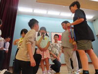 達はとても嬉しそうでした。また、能面を実際に付けてさせてもらったり、事
