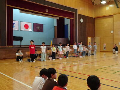 先日認証された児童会役員5名が1年生と上級生がふれあえる、楽しい企画を一生懸命考え、分かりやすくルールを説明したり、歌って盛り上げたりしてくれました。