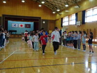 1年生が6年生と手をつないで入場し、上級生がみんなでアーチを作ってお迎えしました。