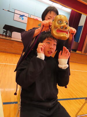 達はとても嬉しそうでした。また、能面を実際に付けてさせてもらったり、事