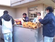 消防署前と沢区民センターの2箇所の集積場所に、車に積まれた回収品がどんどんと集まってきます。地域の方、PTAの方、そして中学生ボランティアと学校職員でトラックに積み込んでいきます。